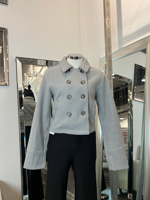 Lia Cropped Dbl Button Down Coat- Grey