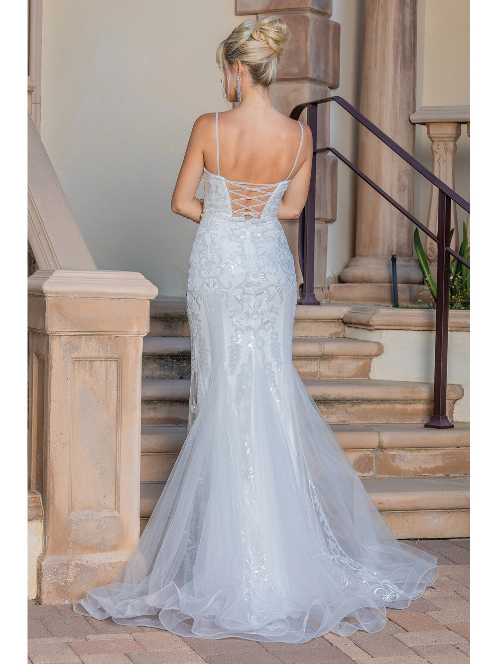 Make it a moment to shine in this Dancing Queen gown. Glams in a sleeveless, illusion halter neckline. From the natural waist begins its full length skirt that completes the look in a train and sheer overlay. This Dancing Queen gown is a charming choice for your next special occasion.