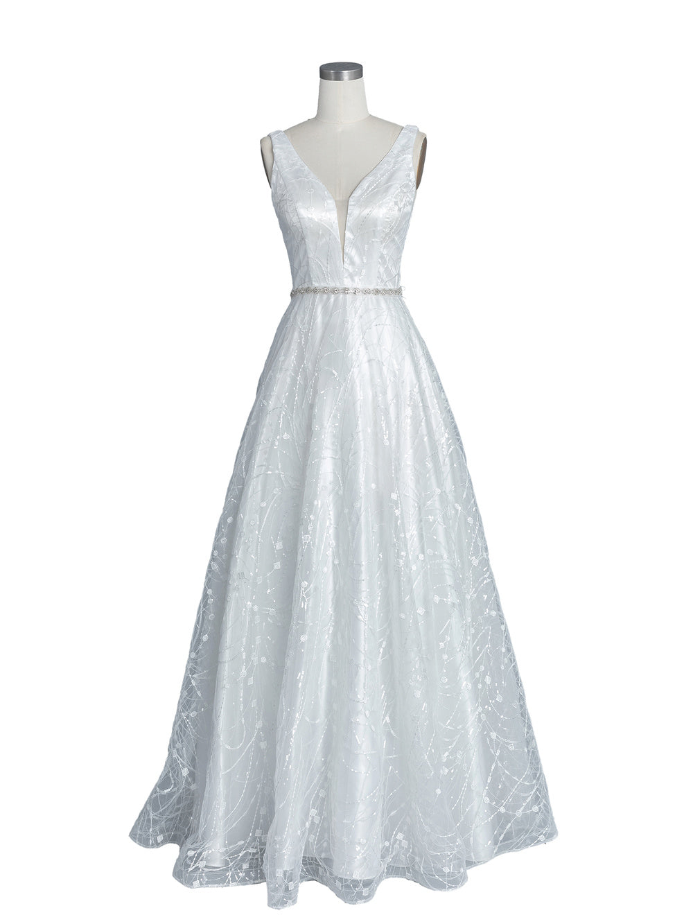 Make it a moment to shine in this Dancing Queen gown. Glams in a sleeveless, illusion halter neckline. From the natural waist begins its full length skirt that completes the look in a train and sheer overlay. This Dancing Queen gown is a charming choice for your next special occasion.