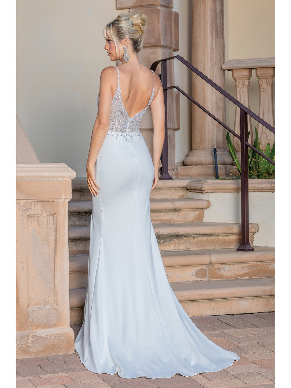 Make it a moment to shine in this Dancing Queen gown. Glams in a sleeveless, illusion halter neckline. From the natural waist begins its full length skirt that completes the look in a train and sheer overlay. This Dancing Queen gown is a charming choice for your next special occasion.