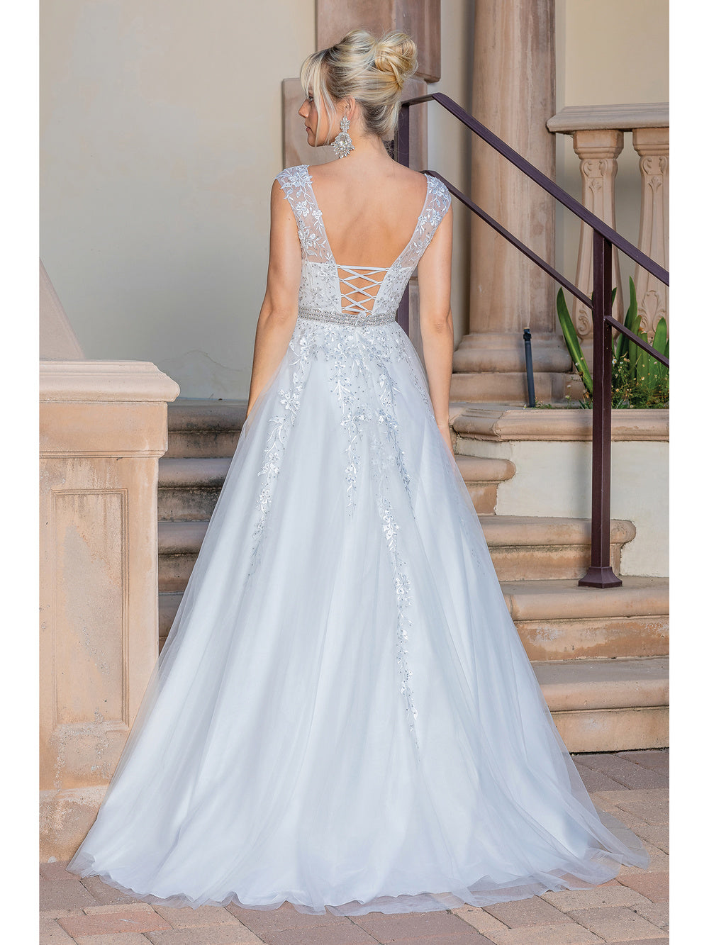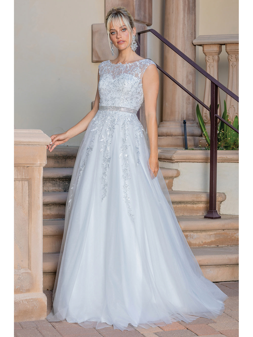 Make it a moment to shine in this Dancing Queen gown. Glams in a sleeveless, illusion halter neckline. From the natural waist begins its full length skirt that completes the look in a train and sheer overlay. This Dancing Queen gown is a charming choice for your next special occasion.