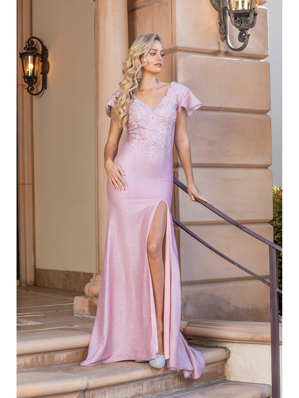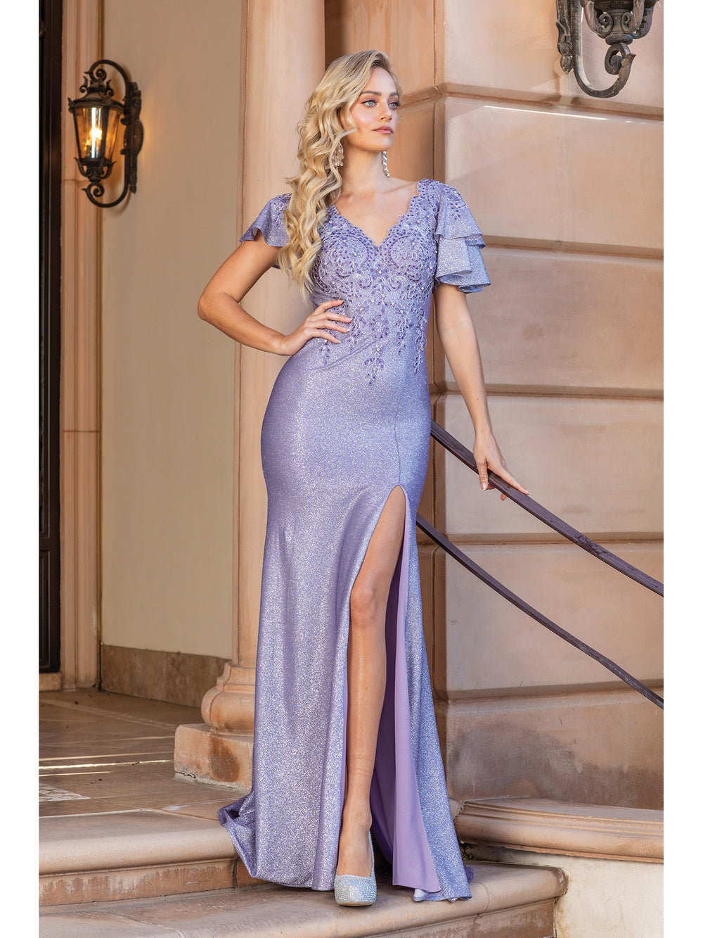 You are sure to be the life of the party when you are wearing this bedazzling Dancing Queen 4330. Bloom with loveliness in this sparkling gown with an eye-catching high slit to reveal the sultriness of the wearer. The bodice is designed with floral appliques and features a V-neckline and butterfly sleeves. This dress is in a sheath silhouette, perfect to accentuate your curves. This Dancing Queen 4330 is a stellar match for the girl who wants to look both sexy and fashion-forward. Models are wearing Gold, Lilac and Rose Gold colors.