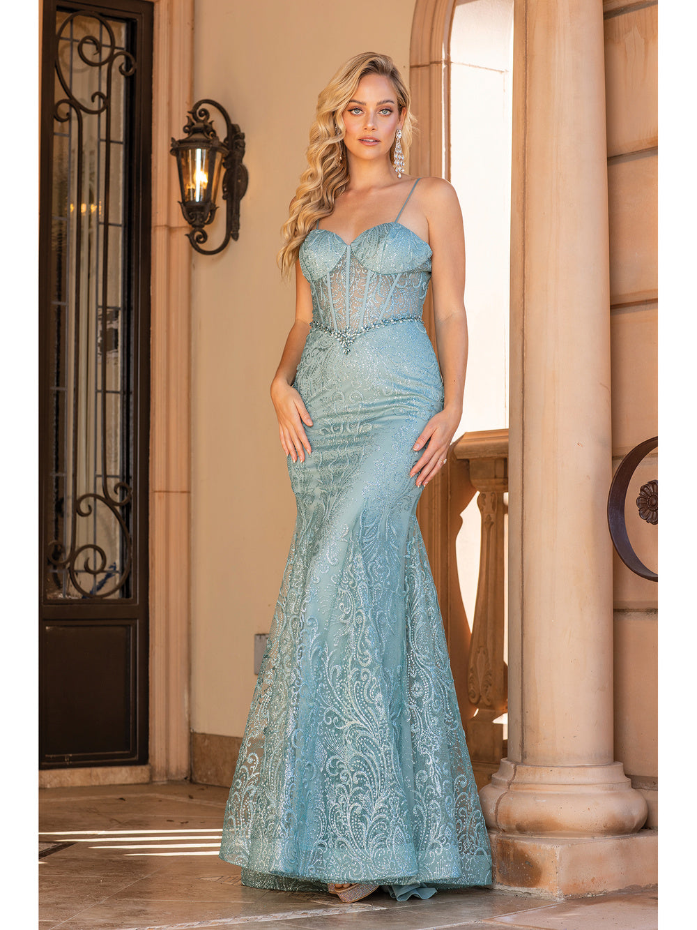 Parade your elegance and get everyones attention in Dancing Queen 4341 creation. Tailored in glitter tulle fabric and embroidered appliques, the corset boning bodice features a sleeveless fitted bodice and a lovely sweetheart neckline. This skirt rendered a sheath silhouette which gorgeously finishes with a sweep train. Revealing an alluring open back with lace-up closure, the small of the back is secured with a concealed zipper for a comfortable and perfect fit. This Dancing Queen 4341 design will surely be able you to dance all night long! Models are wearing Black, Gold, Hunter Green, Rose Gold, and Sage colors.
