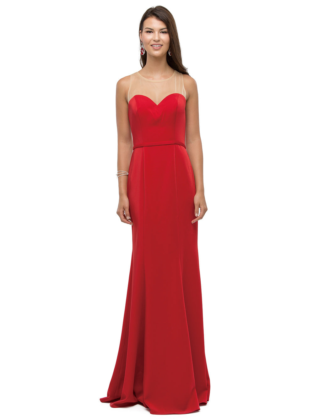 Dress to impress in this exquisite mermaid dress. This long formal dress gives you the look of a strapless bodice but the comfort of a sleeveless illusion-sweetheart neckline. The soft jersey dress fits close to the body and gently flares to the floor providing you with a graceful mermaid silhouette. Be confident in knowing you look your best wearing this beautiful dress!