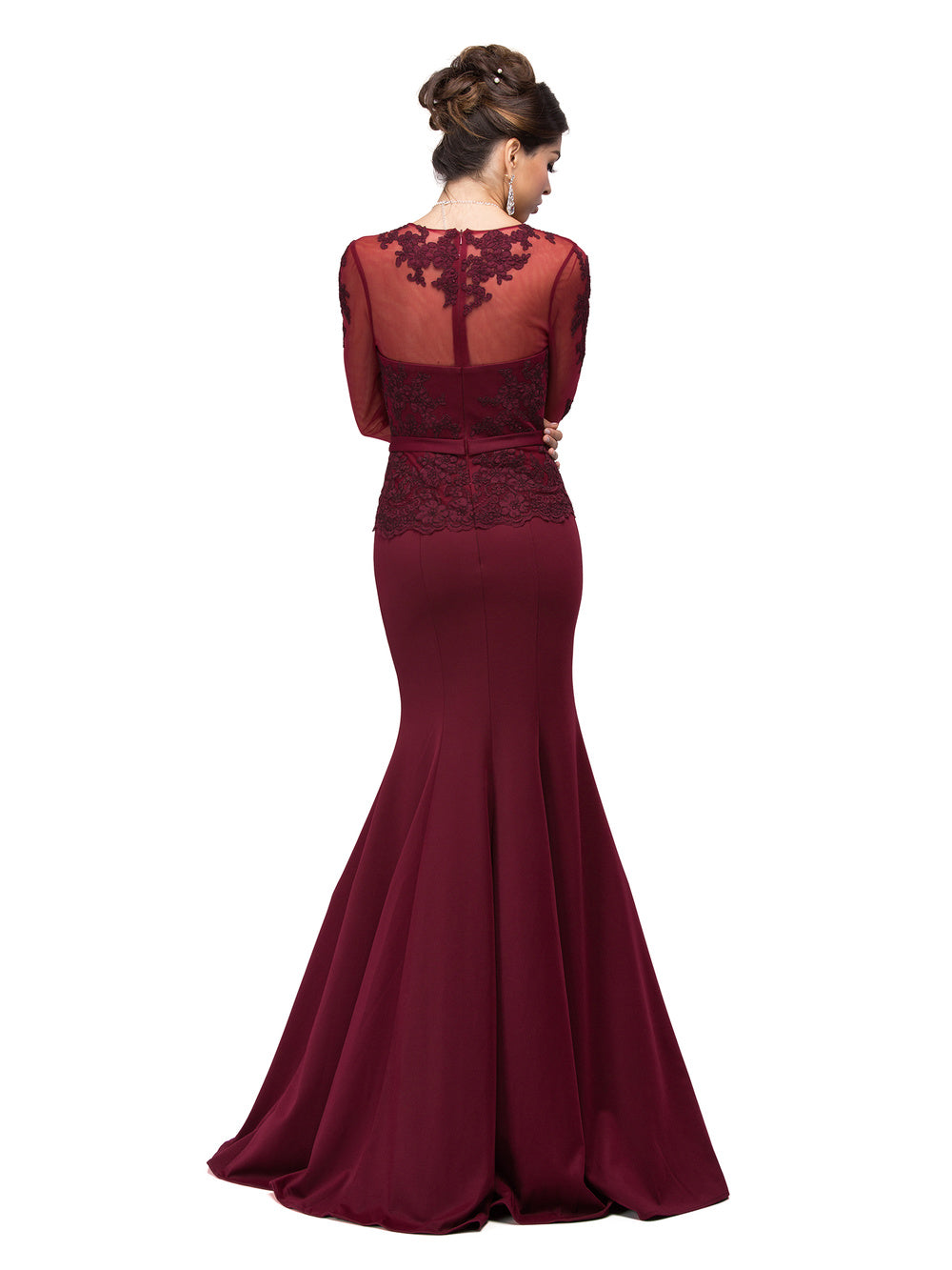 Feel like a royal in this majestic lacy dress with queen Anne neckline. The lacy bodice give it a classic royal touch while the fit and flare skirt hugs your hips enhancing your curves and flares to a wide sweep train.