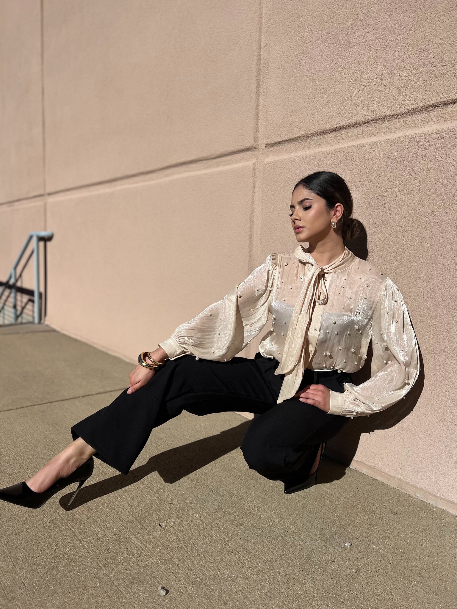 Karen Sheer Pearl Blouse Beige